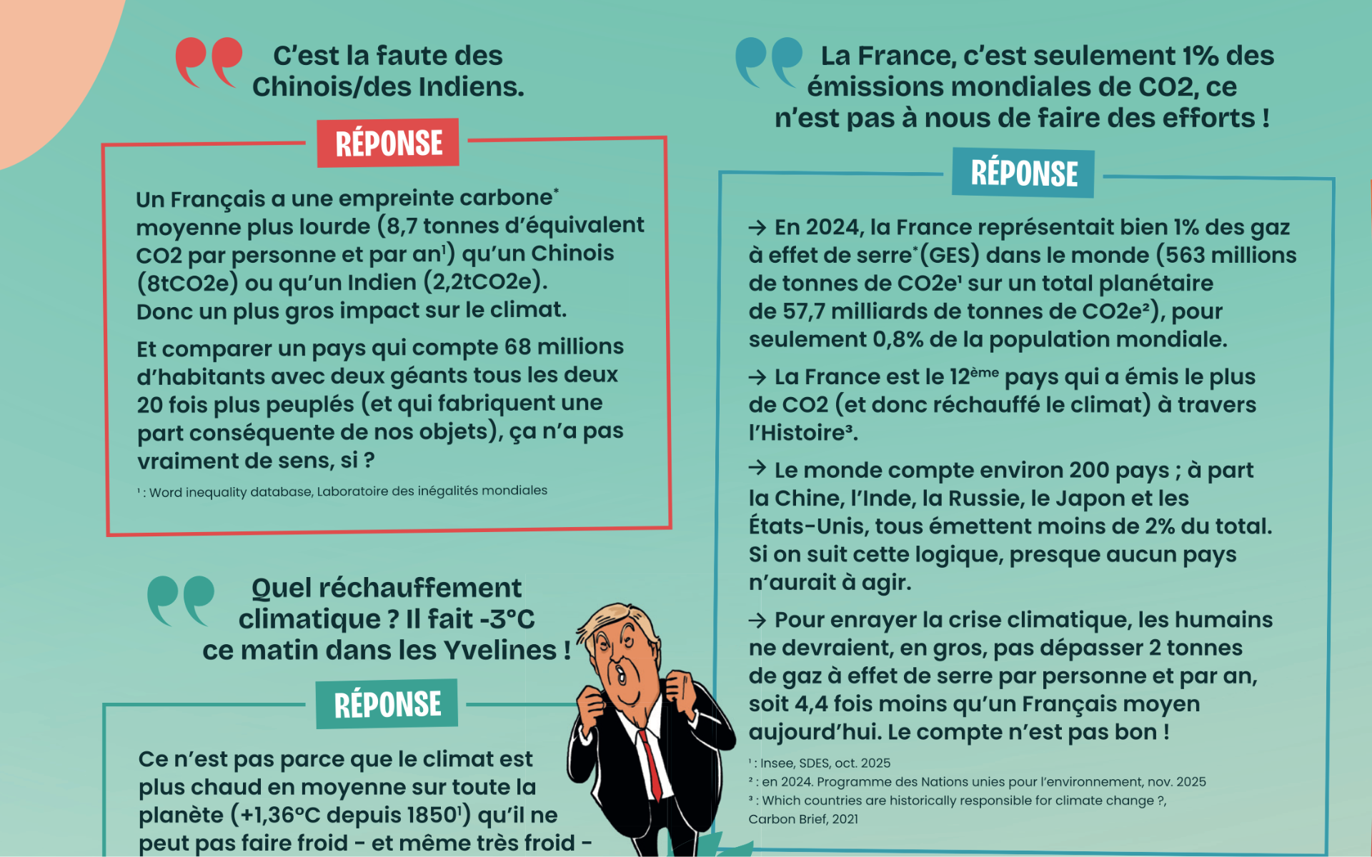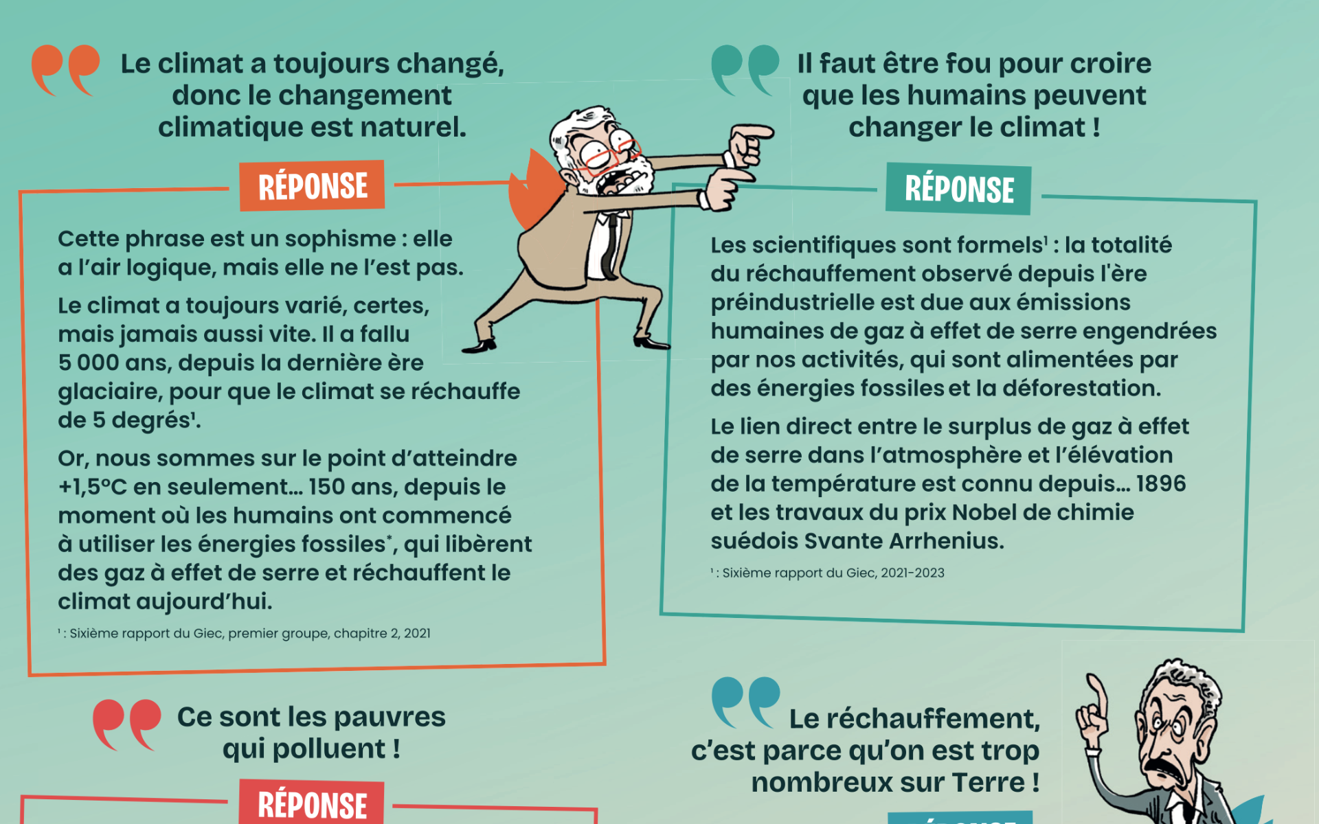 Qu’il s’agisse de votre tonton ou de Donald Trump, retrouvez dans ce poster la liste des arguments cliÂmaÂtosÂcepÂtiques qui reviennent le plus souvent dans les dĂ©bats, et comment y rĂ©pondre avec les bonnes sources.
